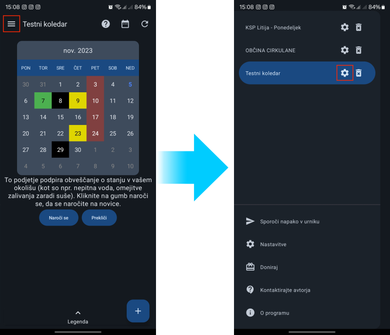 Nastavimo lahko koliko dni pred odvozom naj bomo obveščeni. Izberemo lahko vsak dan, tudi več dni hkrati, do največ 7 dni pred odvozom.