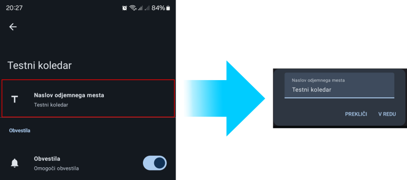Obvestila lahko omogočimo in onemogočimo s klikom na Obvestila/Omogoči obvestila. Privzeto so obvestila omogočena.