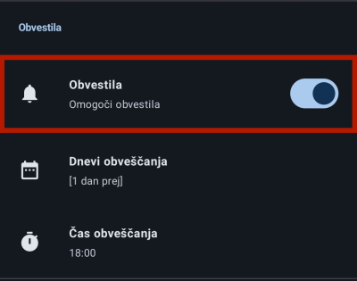 Omogočanje/Onemogočanje obvestil